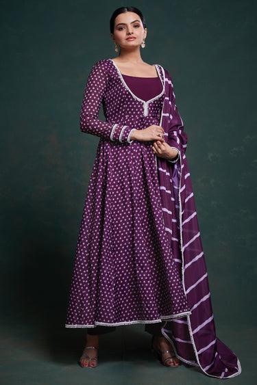 Fashionable Purple Color Printed Organza Fabric Readymade Salwar Suit