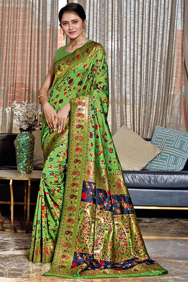 Festival Wear Banarasi Style Art Silk Fabric Saree In Green Color With Weaving Work Pallu