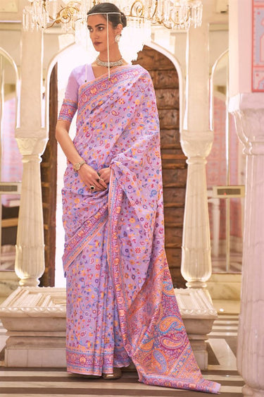 Festival Wear Cotton Silk Fabric Lavender Color Luminous Saree With Weaving Work