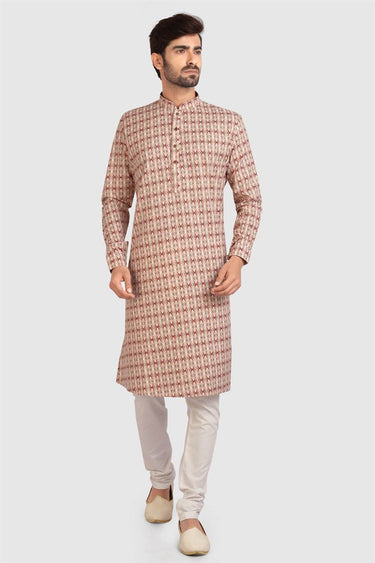 Festival Wear Printed Chikoo Color Kurta Pyjama In Cotton Fabric