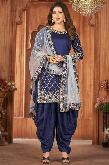 Festive Look Art Silk Fabric Navy Blue Color Supreme Patiala Suits