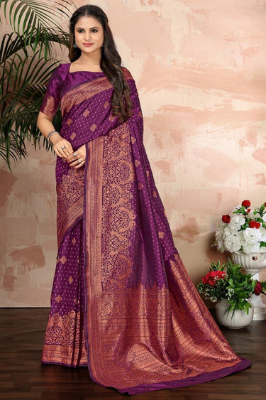 Festive Look Trendy Purple Color Saree In Banarasi Silk Fabric