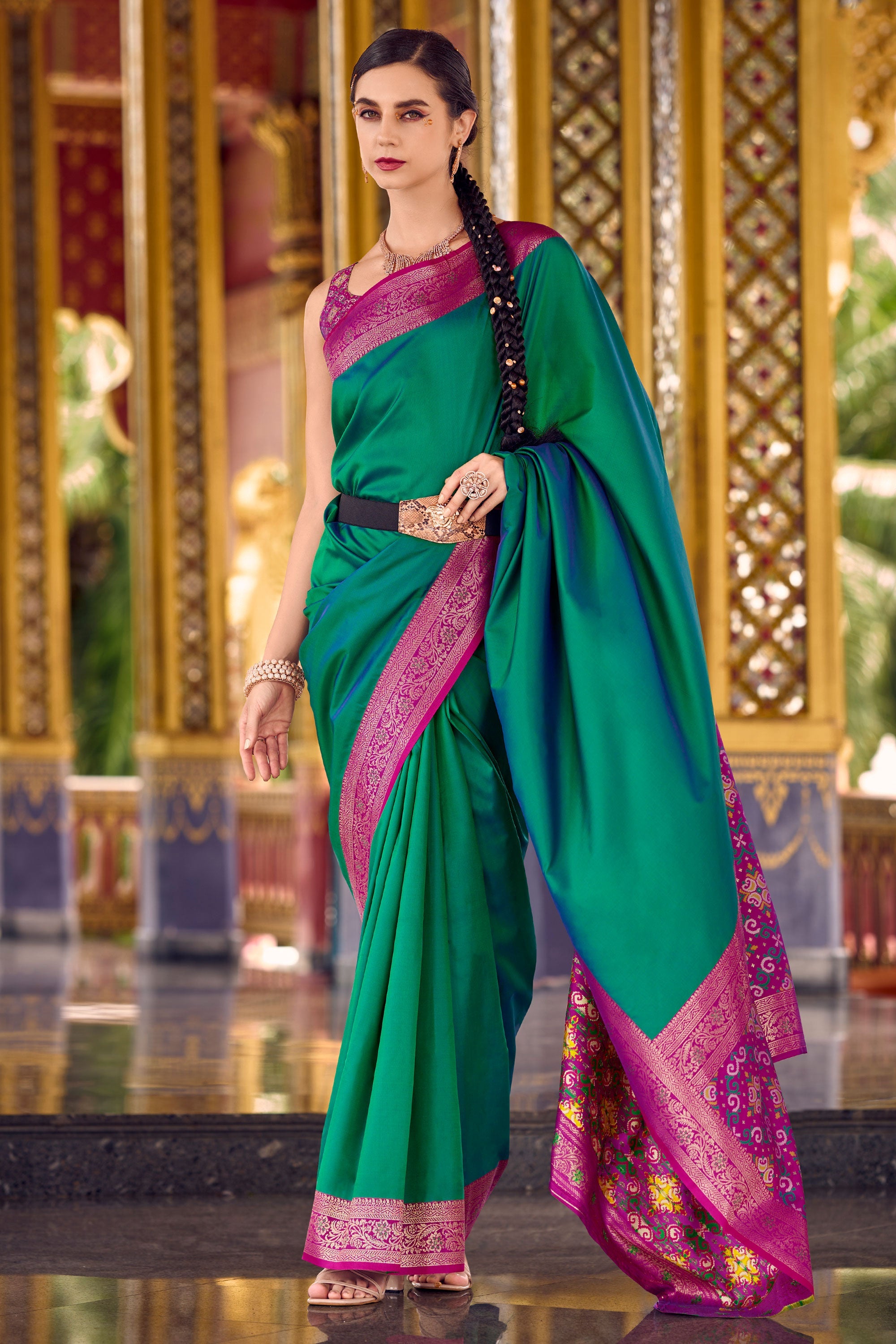 Festive Wear Art Silk Zari Weaving Saree In Dark Green Color