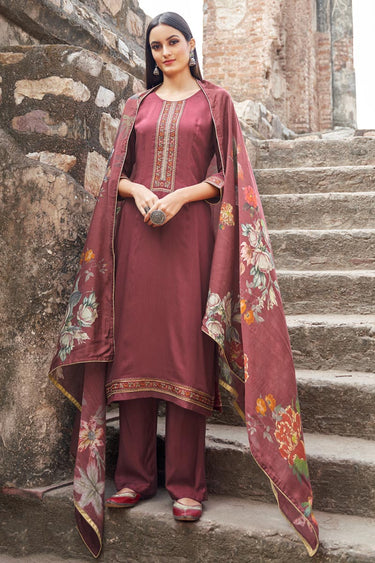 Festive Wear Pink Color Embroidered Straight Cut Suit In Fancy Fabric