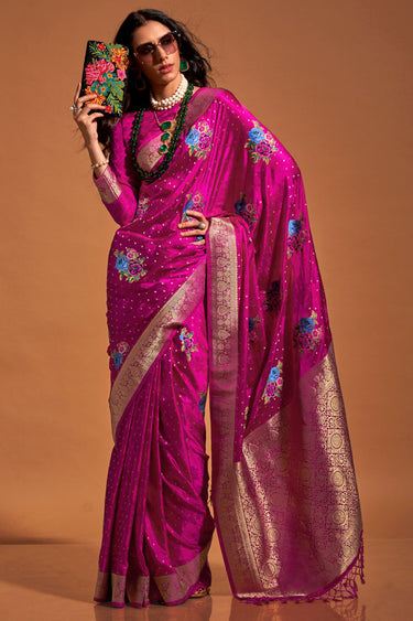 Festive Wear Stylish Rani Pink Pure Satin Handloom Silk Saree