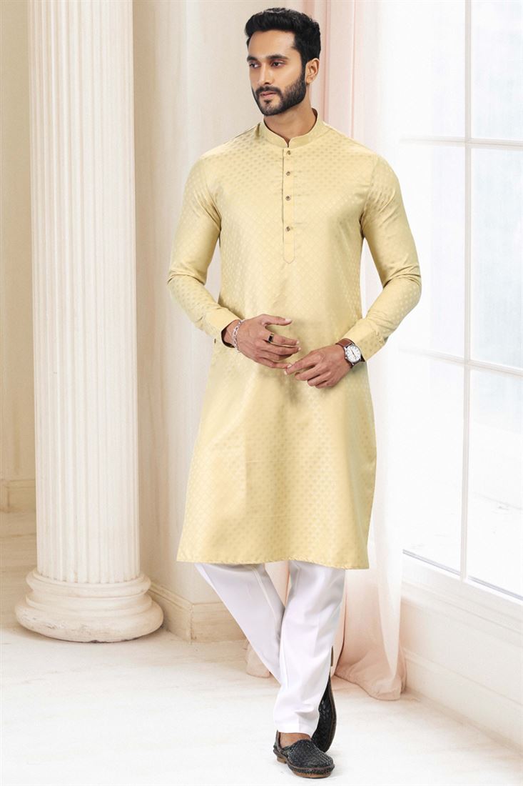Festive Yellow Color Art Silk Kurta Pyjama Set for Men