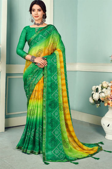 Fetching Chiffon Fabric Printed Saree In Green Color
