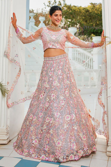 Flaming Grey Pure Tissue Heavy Embroidered Bridal Lehenga Choli
