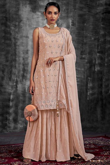 Function Look Peach Color Inventive Sharara Suit In Georgette Fabric