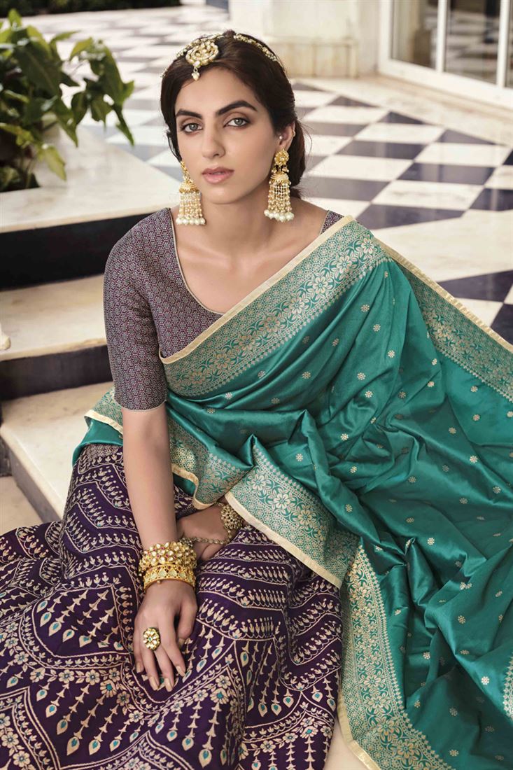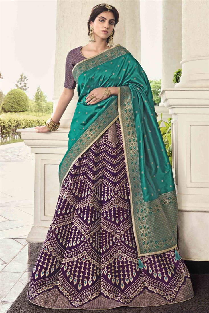 Function Wear Art Silk Fabric Banarasi Style Wine Color Lehenga With Contrast Duppata