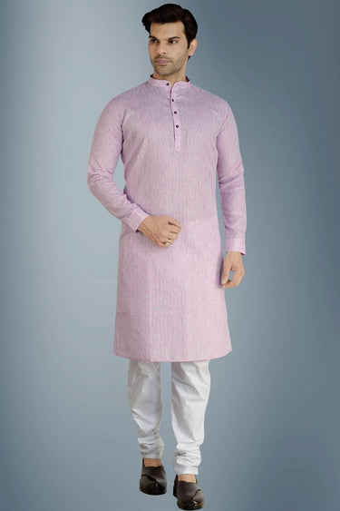 Function Wear Cotton Fabric Ethnic Style Kurta Pyjama In Purple Color