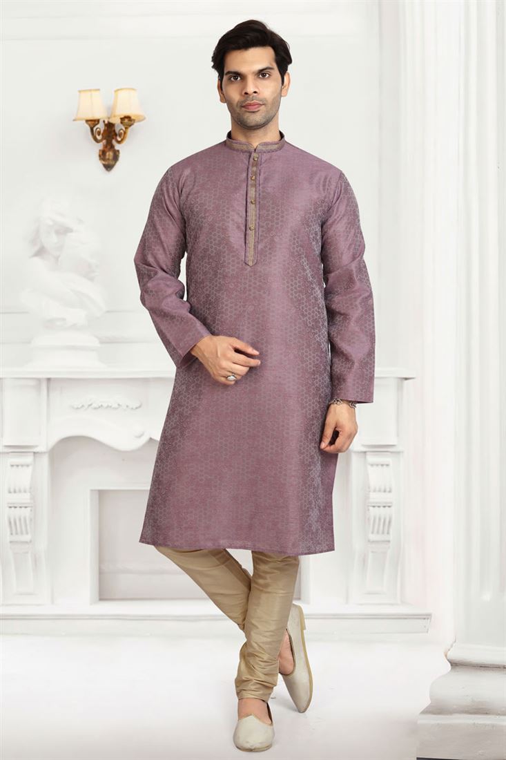 Function Wear Jaqurd Silk Fabric Lavender Color Redaymade Kurta Pyjama