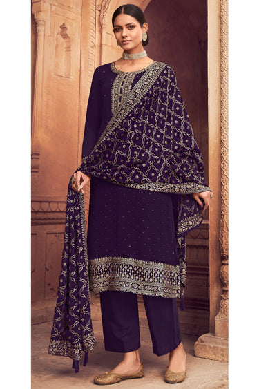 Function Wear Purple Color Embroidered Palazzo Suit In Georgette Fabric