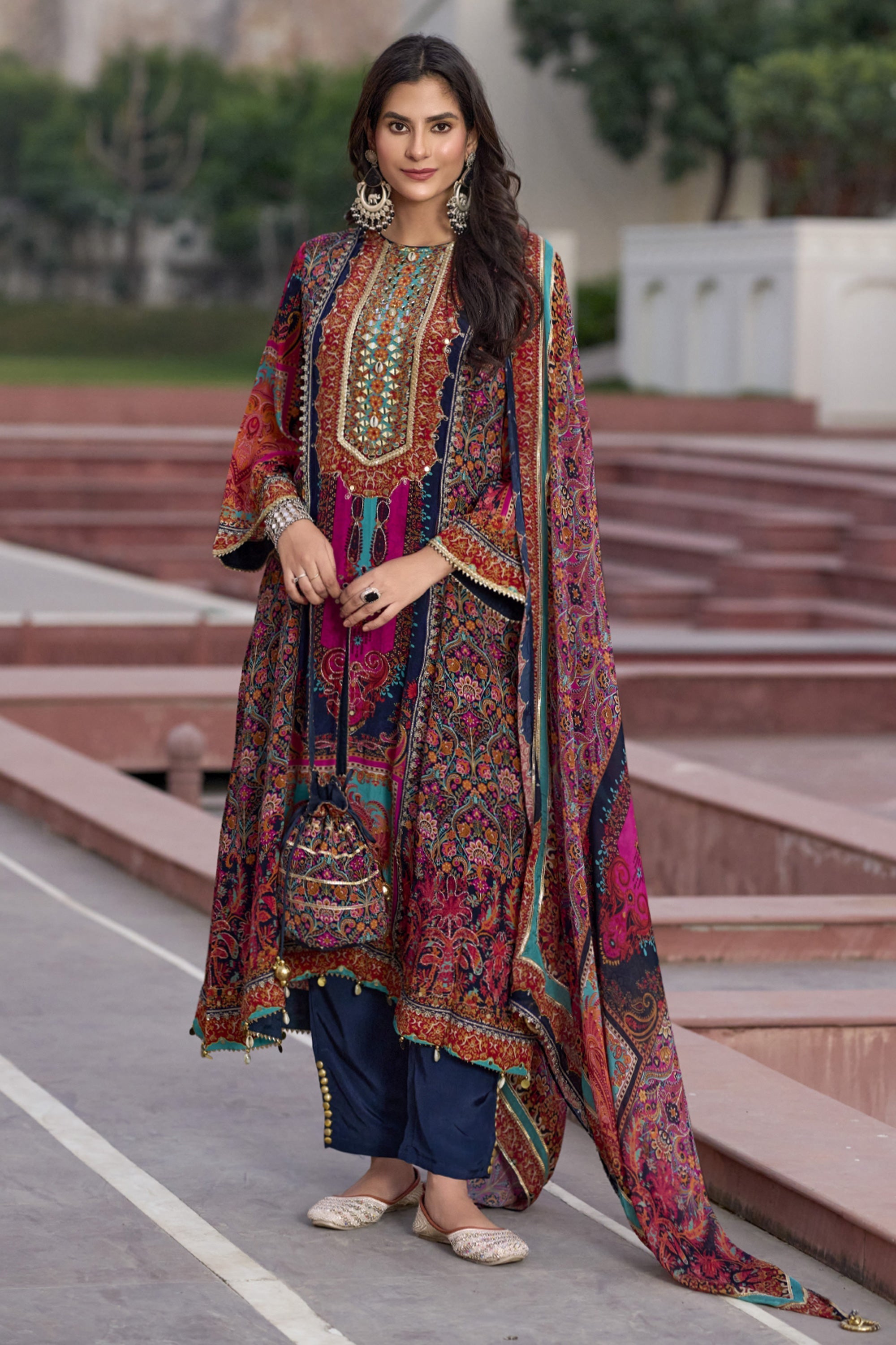 Gardenia Navy Blue Chinon Readymade Festive Salwar Set