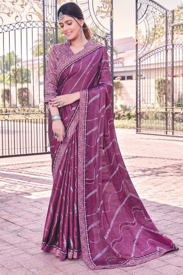 Georgette Bewitching Printed Casual Wine Color Saree