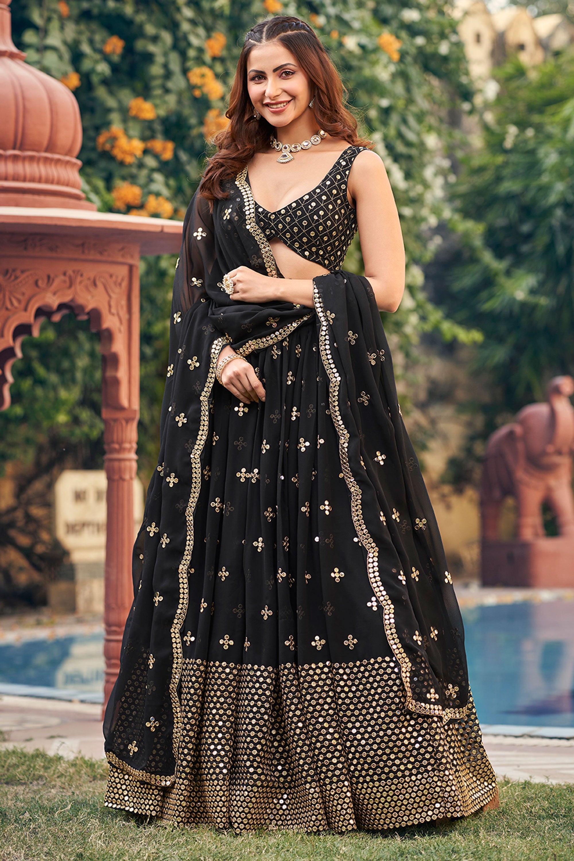 Georgette Fabric Black Color Function Wear Lehenga Choli