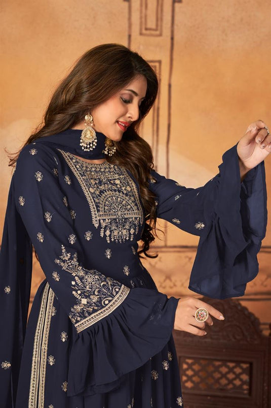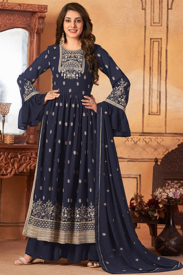 Georgette Fabric Blue Color Excellent Embroidered Palazzo Suit