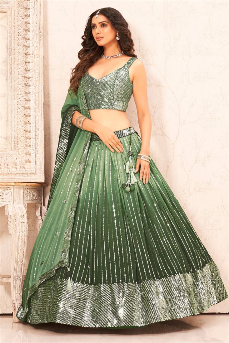 Introducing our exquisite designer Olive Color lehenga, the epitome of elegance and style. Perfect for weddings and special occasions, this stunning lehenga is crafted with the finest Georgette fabric, known for its luxurious feel and exceptional quality.
