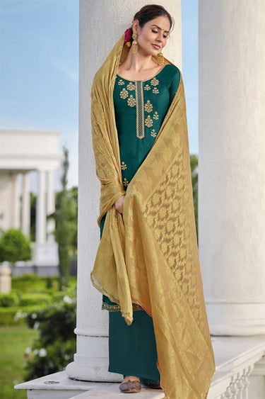 Georgette Fabric Dark Green Color Sangeet Wear Palazzo Suit With Embroidered Work