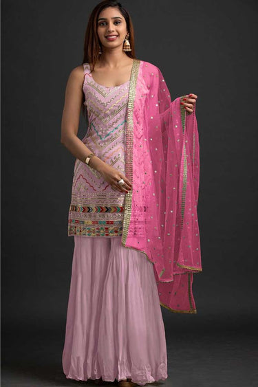 Georgette Fabric Function Wear Glamorous Sharara Suit in Pink Color
