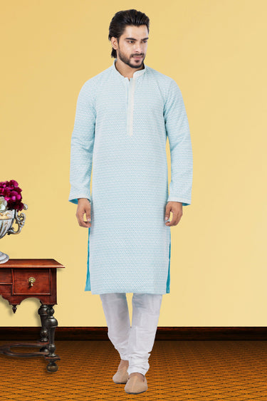 Georgette Fabric Light Cyan Trendy Readymade Men Kurta Pyjama