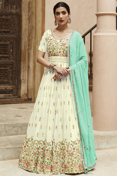 Georgette Fabric Off White Color Excellent Eman Suleman Anarkali Suit