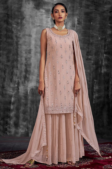 Georgette Fabric Peach Function Look Elegant Sharara Suit