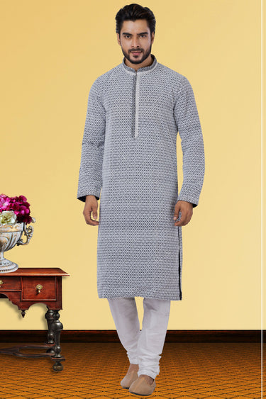 Georgette Fabric Readymade Grey Kurta Pyjama For Men