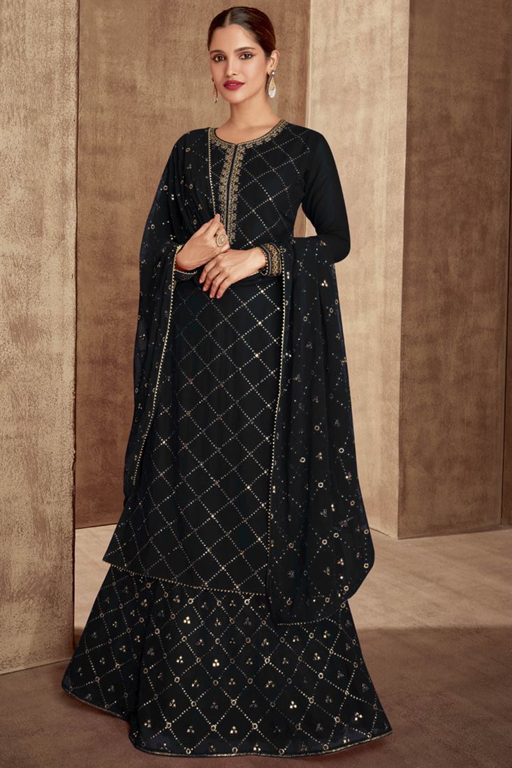 Georgette Fabric Sangeet Wear Black Color Sequins Work Sharara Top Lehenga Featuring Vartika Singh
