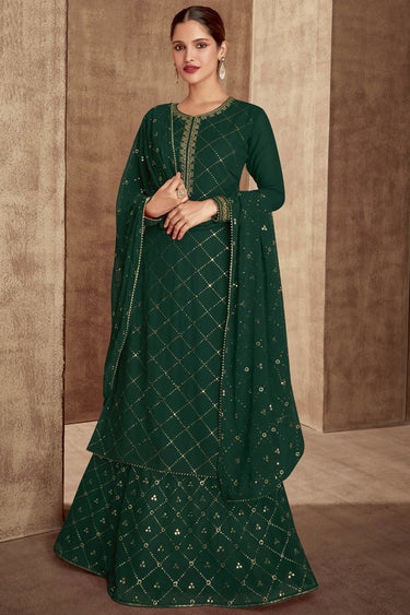 Georgette Fabric Sangeet Wear Dark Green Color Sequins Work Sharara Top Lehenga Featuring Vartika Singh