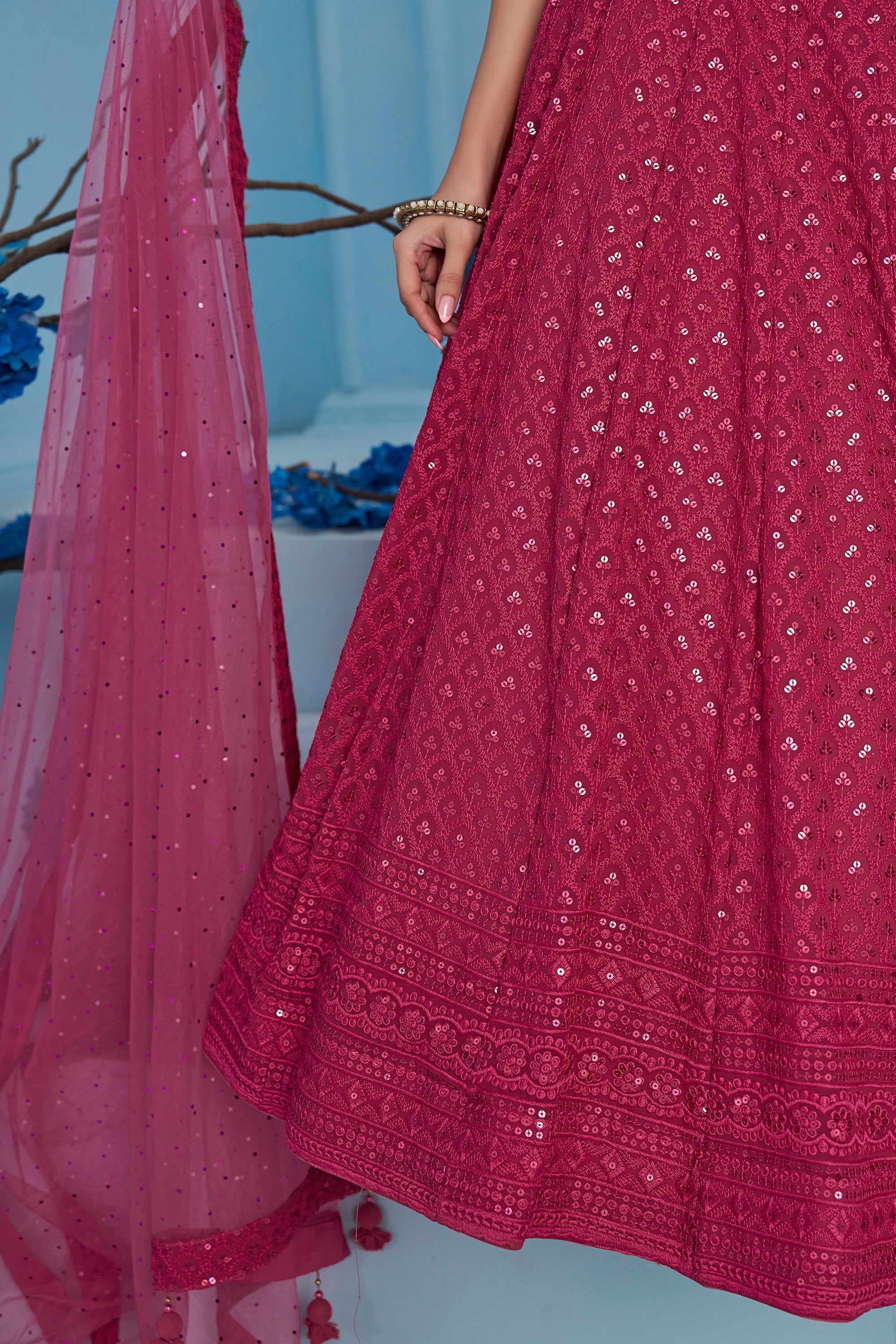 Georgette Fabric Sangeet Wear Lehenga Choli With Sequins Work In Pink Color