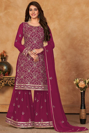 Georgette Fabric Sangeet Wear Wonderful Sharara Suit In Rani Color