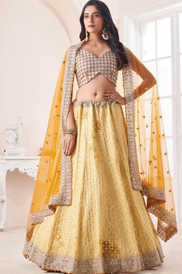Georgette Fabric Wedding Wear Beatific Lehenga In Yellow Color