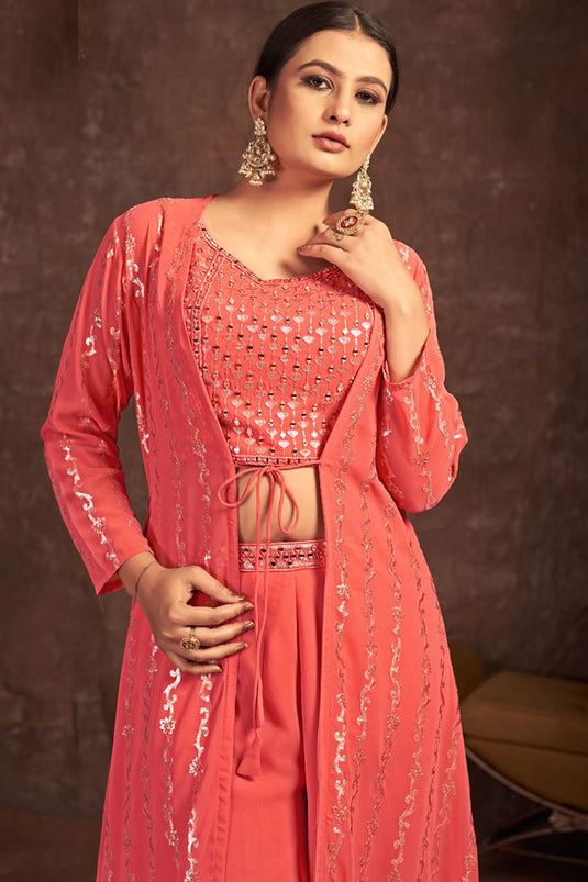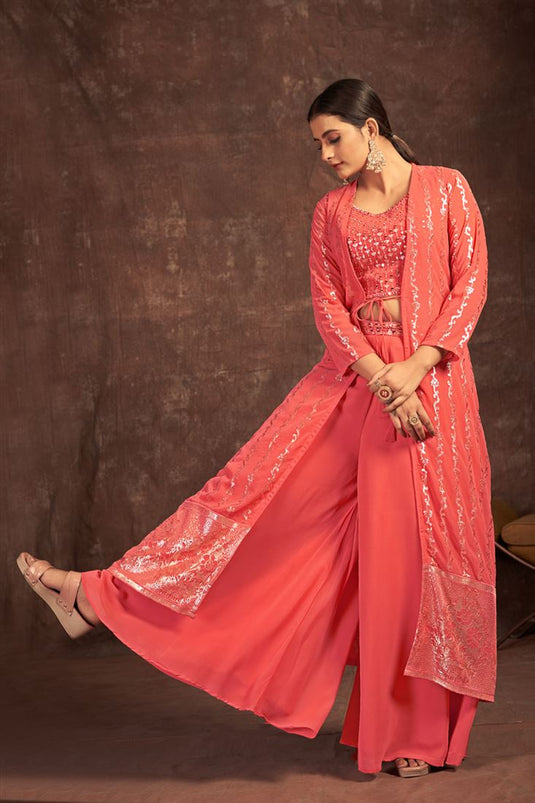 Georgette Orange Color Glamorous Readymade Palazzo Suit With Jacket