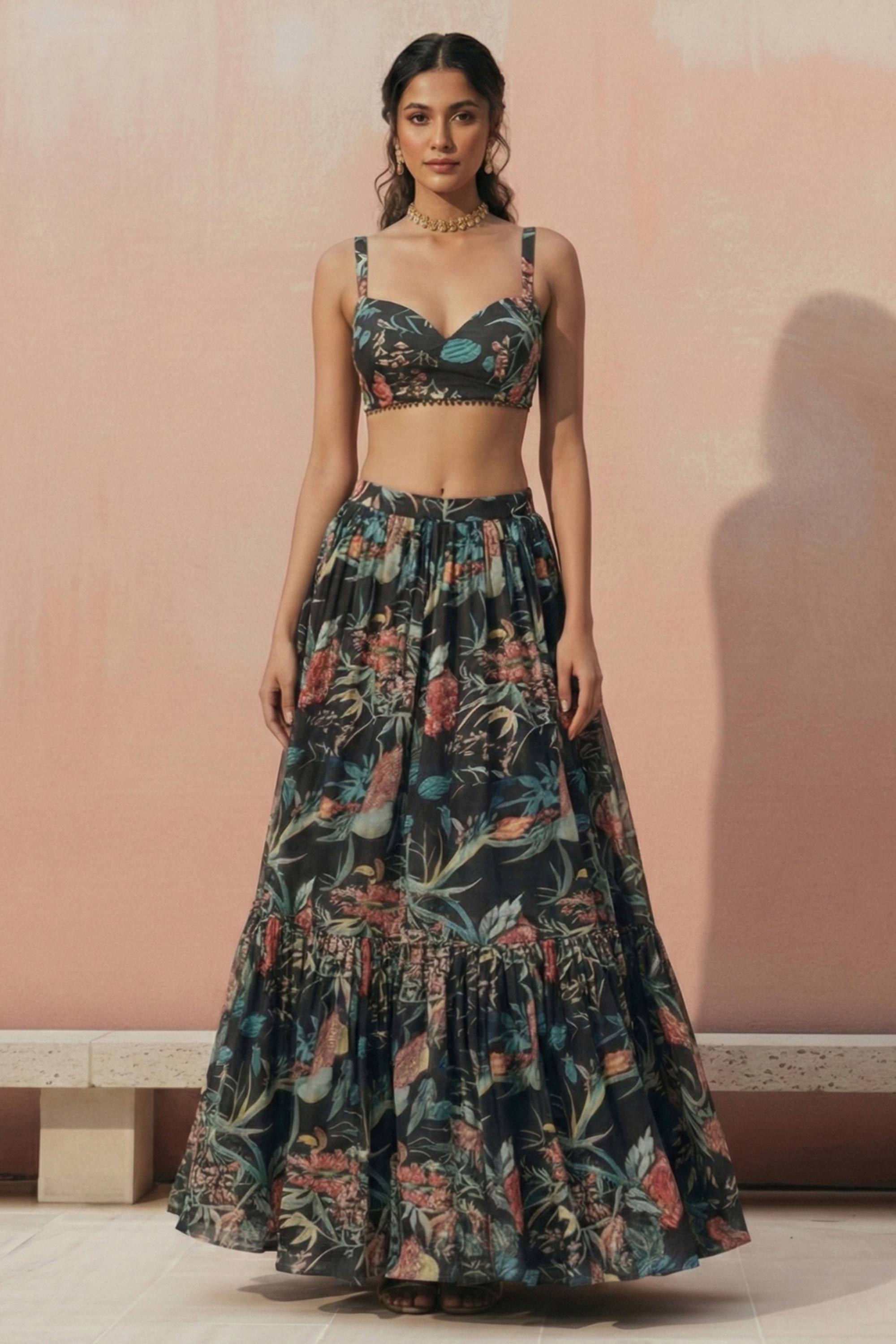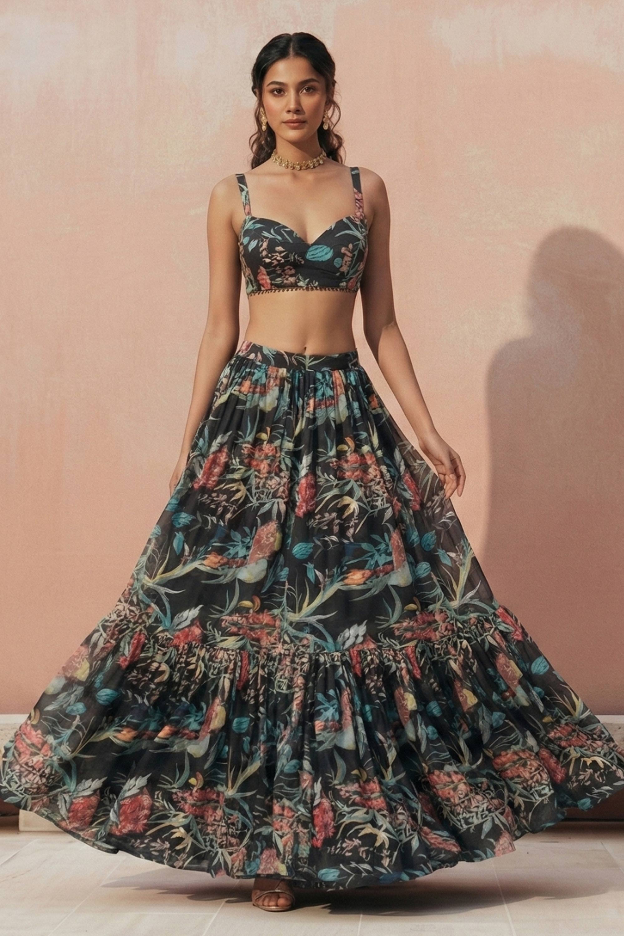 Georgette Printed Black Function Wear Readymade Lehenga Choli