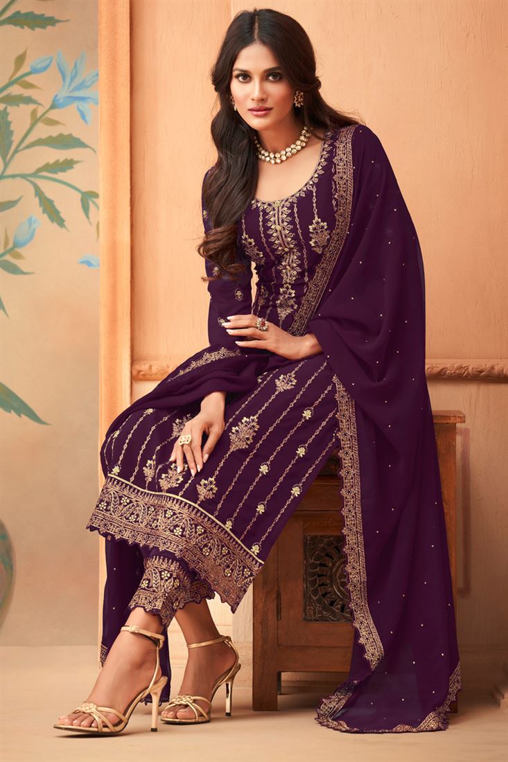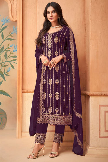 Georgette Purple Color Stunning Embroidered Salwar Suit