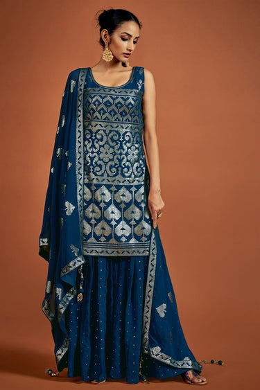 Georgette Sequins Navy Blue Straight Sharara Suit