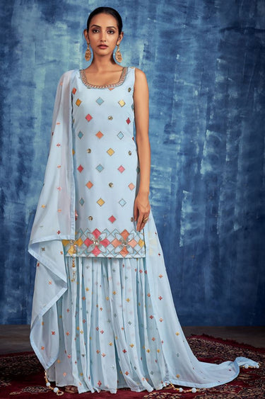 Georgette Sequins Work Sharara Suit In Sky Blue Colour