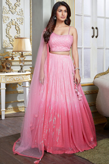 Georgette Wedding Wear 3 Piece Readymade Lehenga In Pink With Sequins Work