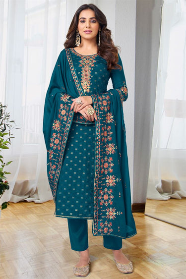 Ginni Kapoor Sequins Work Chinon Salwar Suit In Peacock Blue Teal Color
