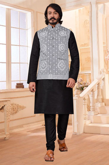 Glamorous Black Color Art Silk Fabric Festive Wear Readymade Kurta Pyjama With Stylish Jacket