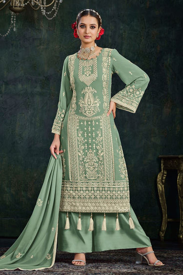 Glamorous Embroidered Work Sea Green Color Palazzo Suit