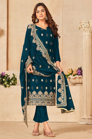 Glamorous Vichitra Fabric Teal Color Function Wear Salwar Suit