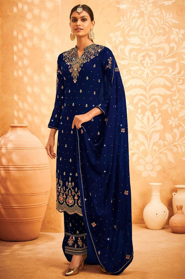 Glittering Embroidered Work On Navy Blue Color Georgette Fabric Party Wear Stylish Salwar Suit