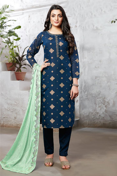 Glittering Teal Color Art Silk Function Wear Salwar Suit