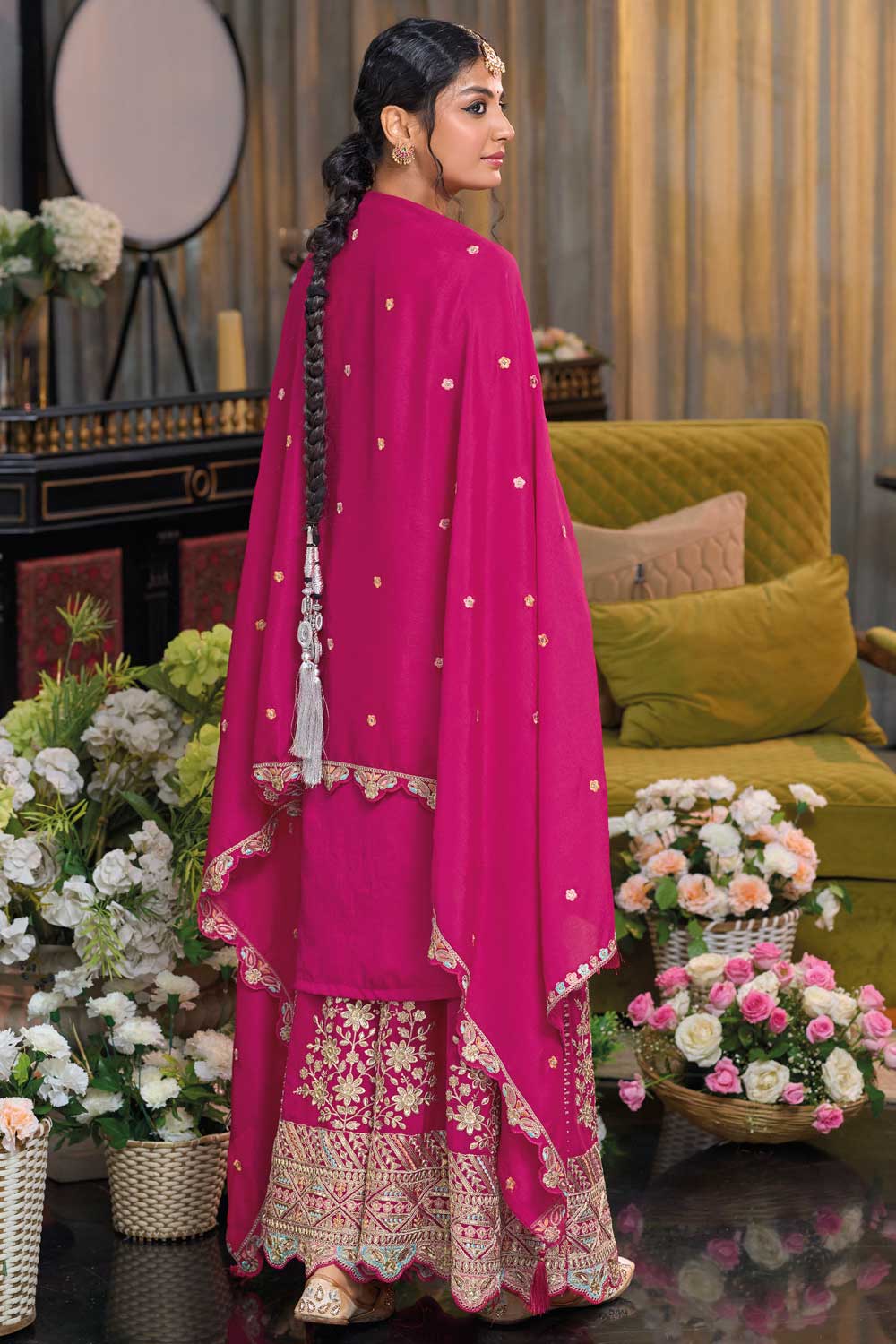 Glorious Function Wear Rani Color Chinon Palazzo Suit