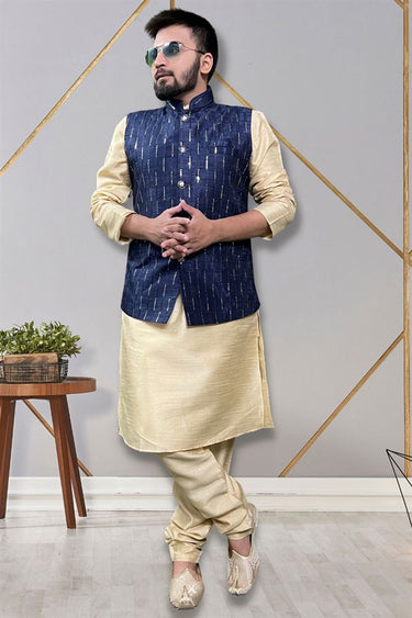 Gorgeous Art Silk Fabric Readymade Kurta Pyjama For Men With Blue Color Jacket