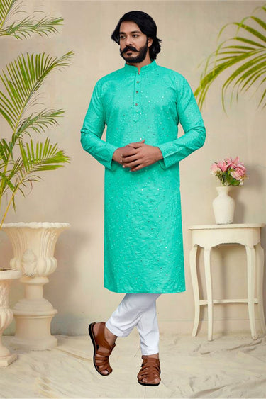 Gorgeous Art Silk Fabric Reception Wear Readymade Kurta Pyjama For Men