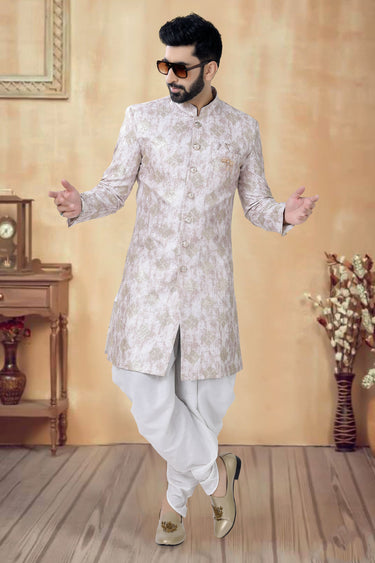 Gorgeous Beige Color Silk Fabric Wedding Wear Readymade Indo Western For Men
