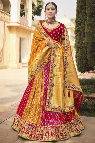 Gorgeous Multi Color Embroidered Wedding Wear Lehenga Choli In Silk Fabric